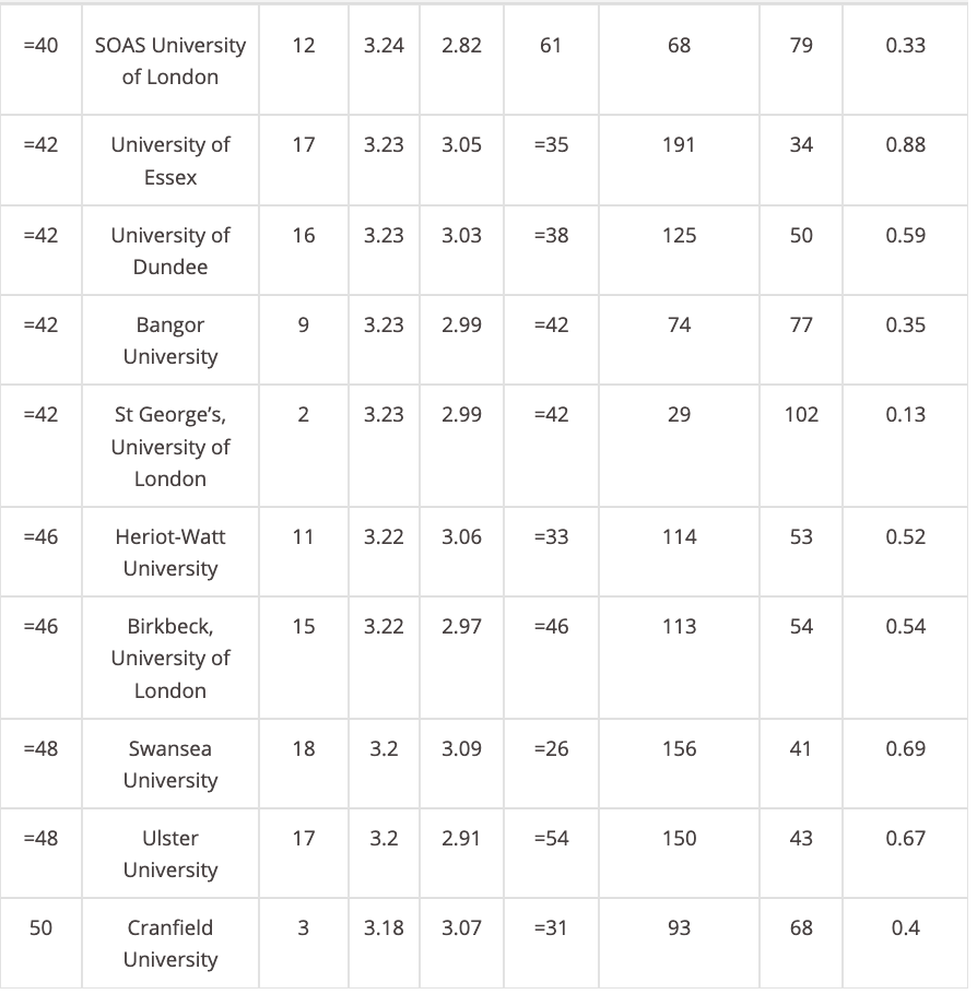 从2021REF总体评分来看,实力最强的并不是牛津和剑桥大学,而是英国G5中以理工科出名的帝国理工学院。 而剑桥大学只能和伦敦政治经济学院并列第3名,牛津大学甚至低于布里斯托大学(排名第5)和伦敦大学学院(排名第6),排名第7。 具体排名TOP 50院校如下: