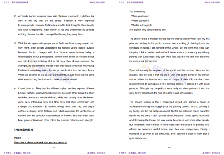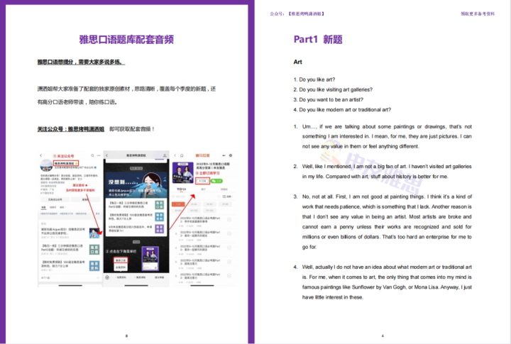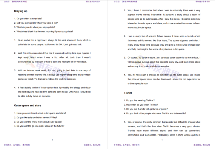 2023年1-4月雅思口语题库 完整答案版来啦!添加微信:thinkuXS即可领取~