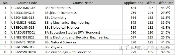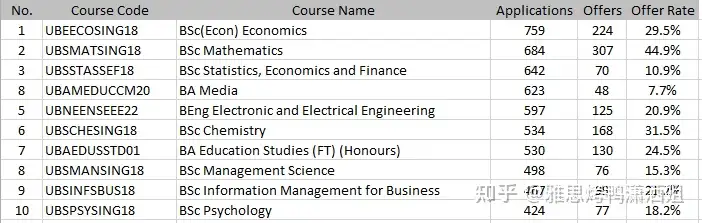 专业方面,经济学是中国学生的首选,UCL共收到759份申请,发出224份offer,offer率29.5%。紧跟其后的数学专业也受到了684份申请,offer率近50%。