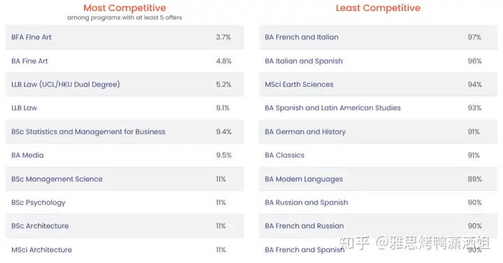 UCL的offer率最低的是艺术类专业,美术类跌入谷底为4.8%,管理类和传媒类专业的offer率也都低于11%。