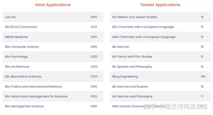 很多同学都想冲王牌专业,但从UCL提供的数据来看,法律、经济学申请竞争依旧很大,申请人数均超过了4000+,排名第三的医学专业也高达3900+。